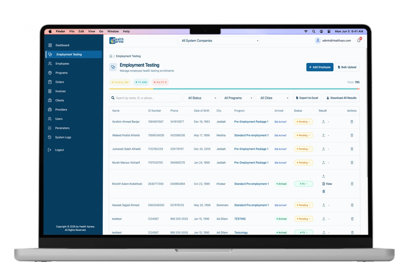 "HealthXpress streamlined our pre-employment testing process completely. What used to take weeks now takes days, and the portal makes tracking effortless."
